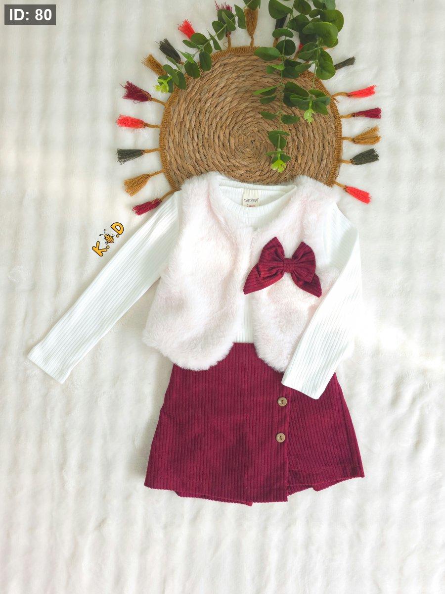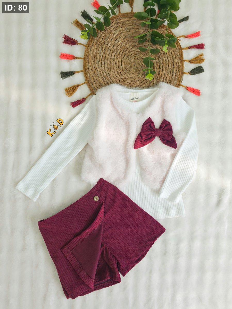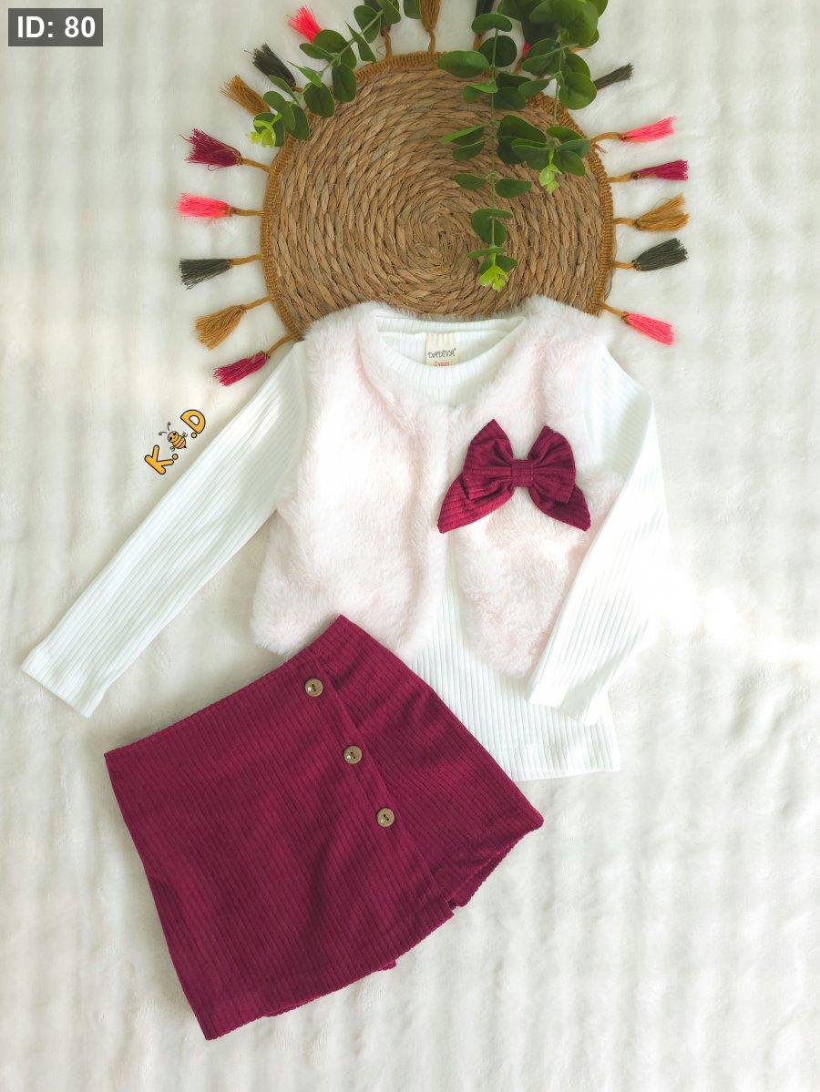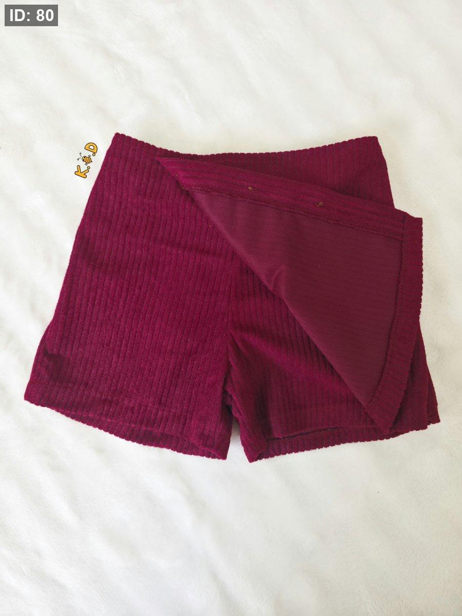 سكورت مخمل (شورت مع تنورة) برغندي بخصر مرن