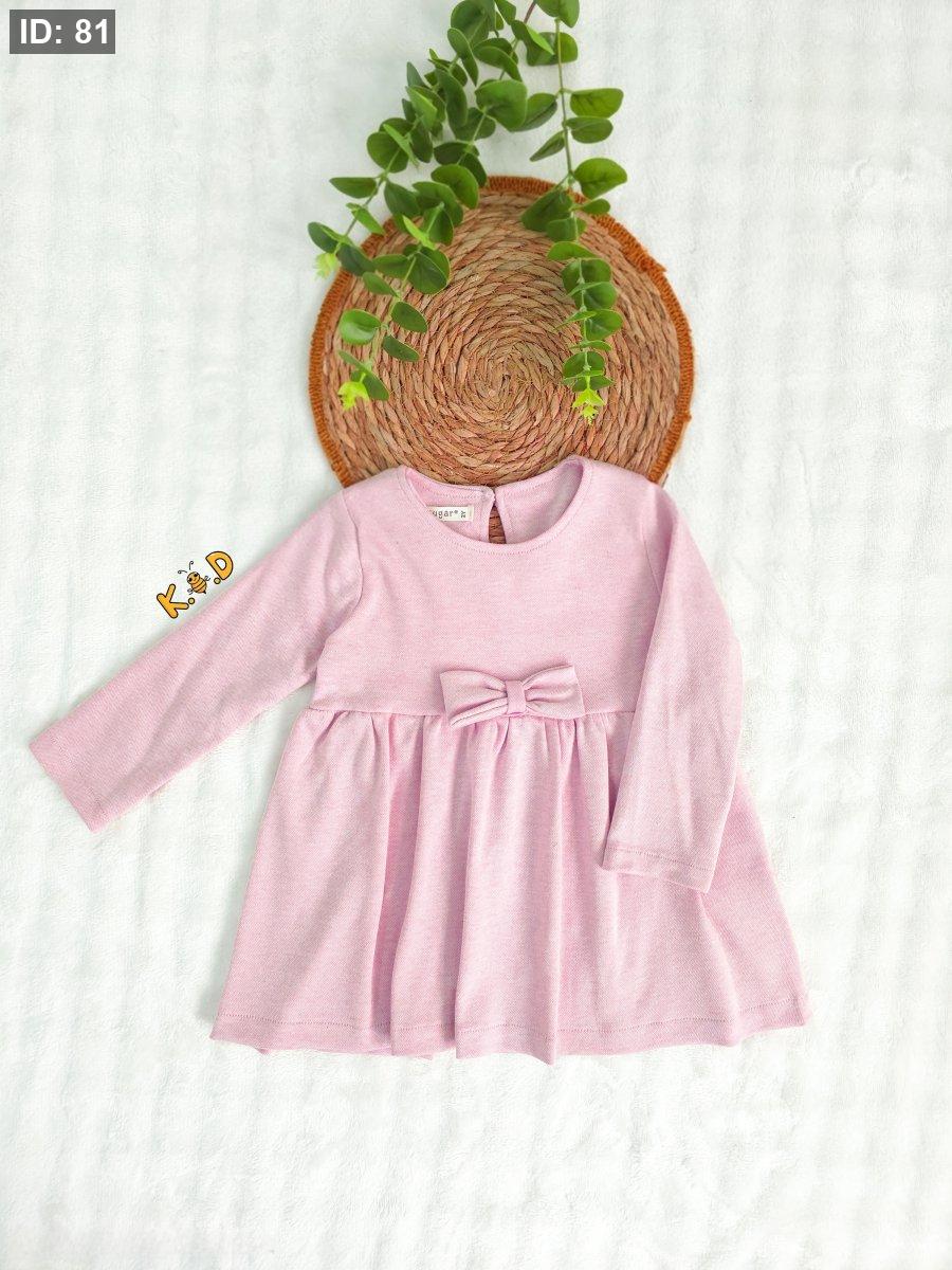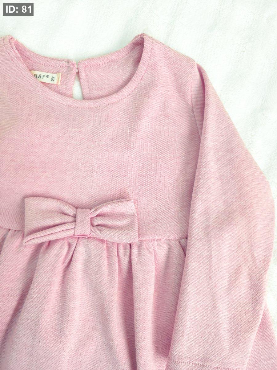 فستان زهري كم طويل مع شبرة على الخصر